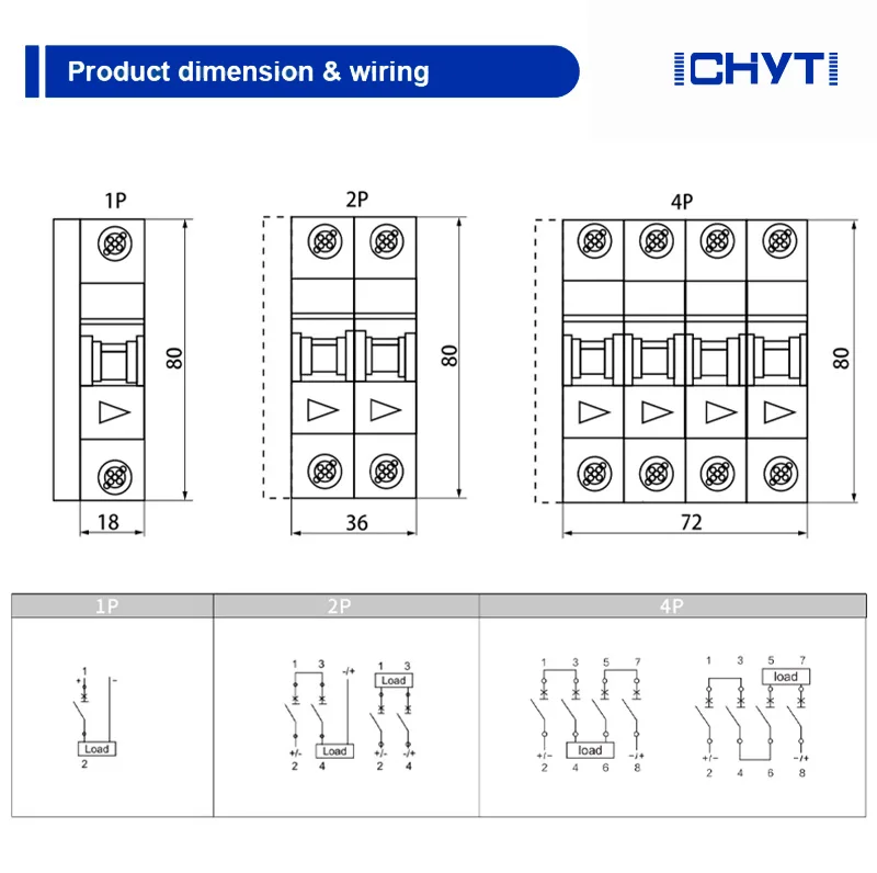 يعتبر قاطع دائرة التيار المستمر ثنائي القطب ICHYTI المصنوع في الصين مناسبًا لدوائر التحكم في التيار المستمر التي تتطلب حماية من التيار الزائد، خاصة للأجهزة الكهربائية أو المعدات التي توفر أو لا تتطلب حماية الدائرة الفرعية، لضمان التشغيل الآمن للمعدات.