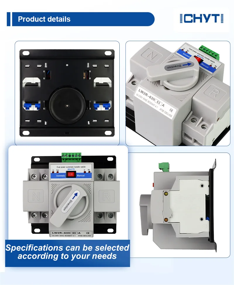 يقدم لك موردو ICHYTI مفتاح نقل المولد التلقائي ats عالي الجودة، على أمل تزويدك بفهم أعمق لخصائص ومزايا مفتاح نقل المولد التلقائي ats. ترحب ICHYTI بالعملاء الجدد والقدامى لمواصلة التعاون معنا وخلق مستقبل أفضل بشكل مشترك. يتم تصدير منتجاتنا إلى أكثر من 70 دولة ومنطقة، وحصلت على أكثر من عشر شهادات دولية، مثل شهادات نظام CE، TUV، وCB.