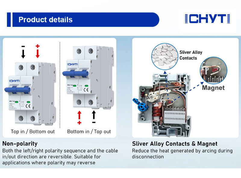 تدعوك CHYT لزيارة مصنعنا لشراء قاطع دائرة التيار المباشر الأحدث والأكثر مبيعًا وبأسعار معقولة وعالي الجودة. ونحن نتطلع إلى العمل معكم. يجب ألا يتجاوز تصنيفها الحالي 63A.